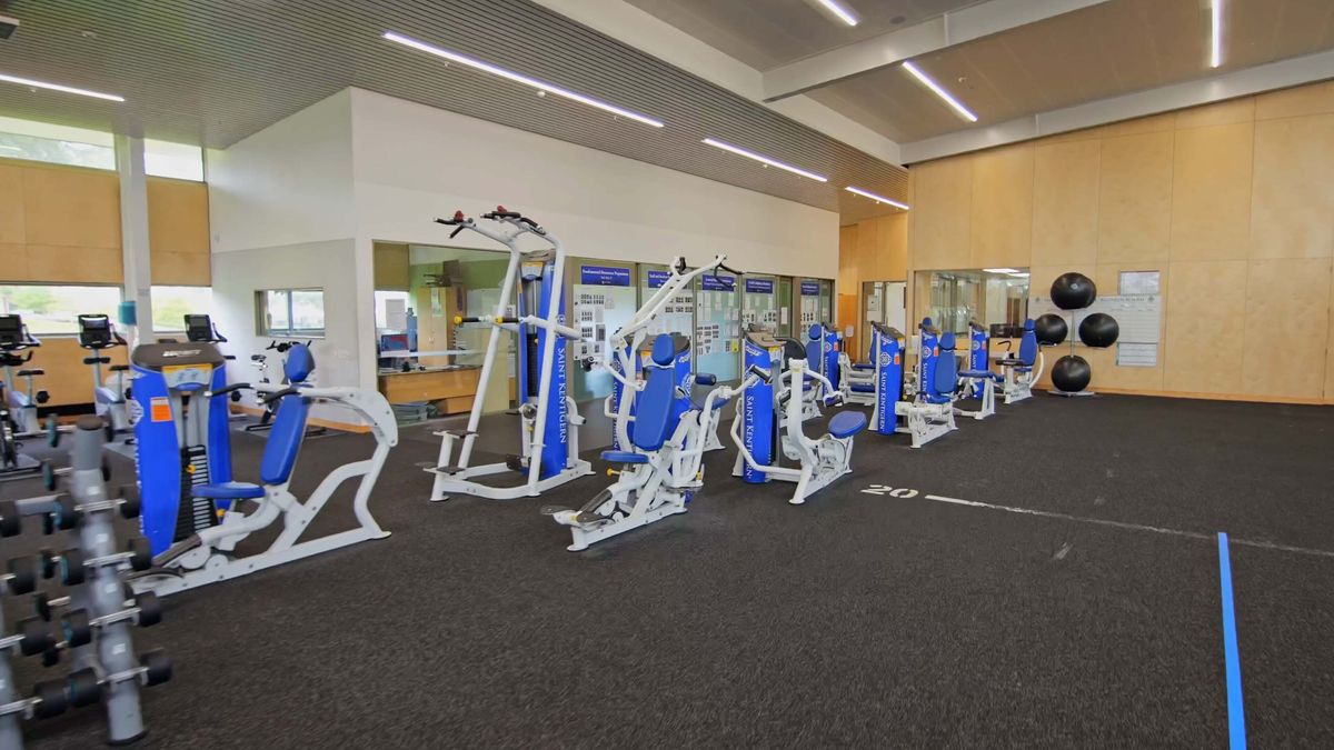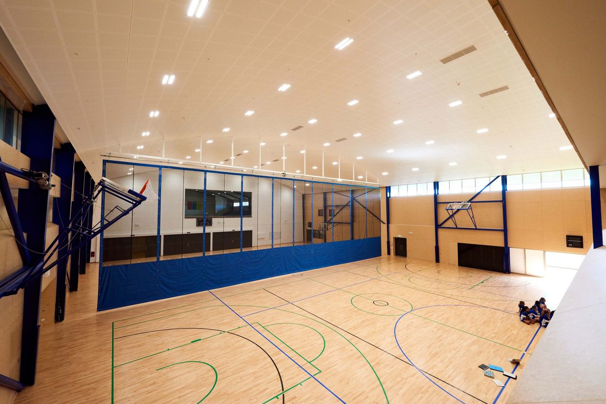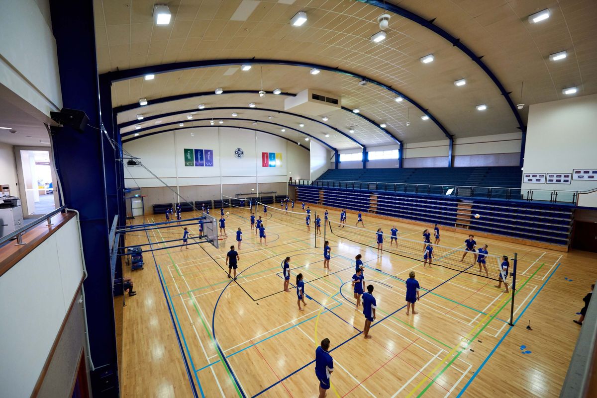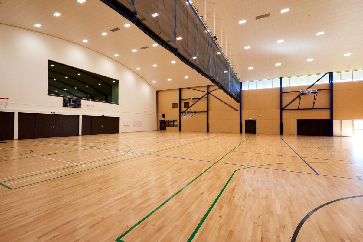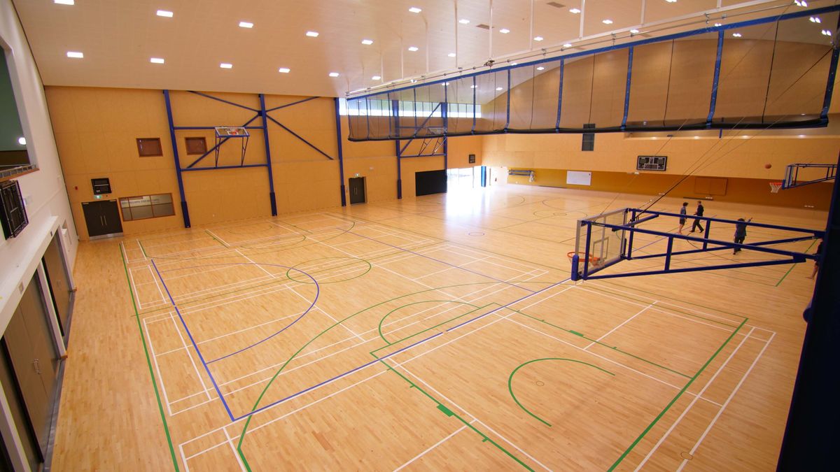 The Sports Centre accommodates two versatile indoor court spaces designed to cater to various sports including volleyball, basketball, netball, and badminton. An innovative electronic curtain can be drawn to transform our two courts into one expansive 1,800m² area.
