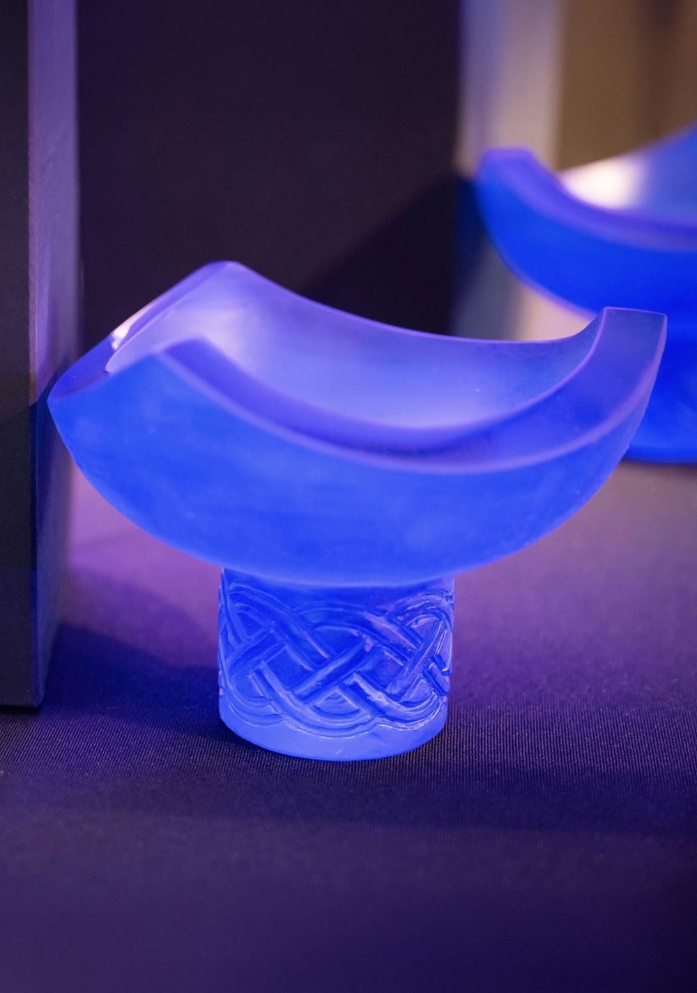 Recipients of a Distinguished Alumni Award receive a specially commissioned, handcrafted commemorative award that has been made from glass casting. Glass casting is the process in which glass objects are cast by directing molten glass into a mould where it solidifies, a technique that has been used since the 15th century BC in both Ancient Egypt and Mesopotamia.