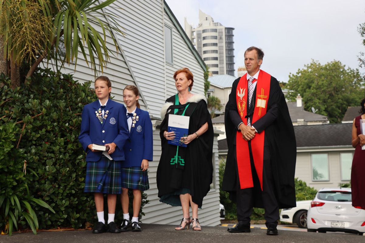 Brooke and Chloe were called on to accept their duties as Head Girl and Deputy Head Girl, followed by the prefect team. The girls then collectively responded to the pledge to serve Saint Kentigern Girls’ School to the best of their ability, demonstrating pride in all they do and with a sense of care and friendship for all girls and staff.