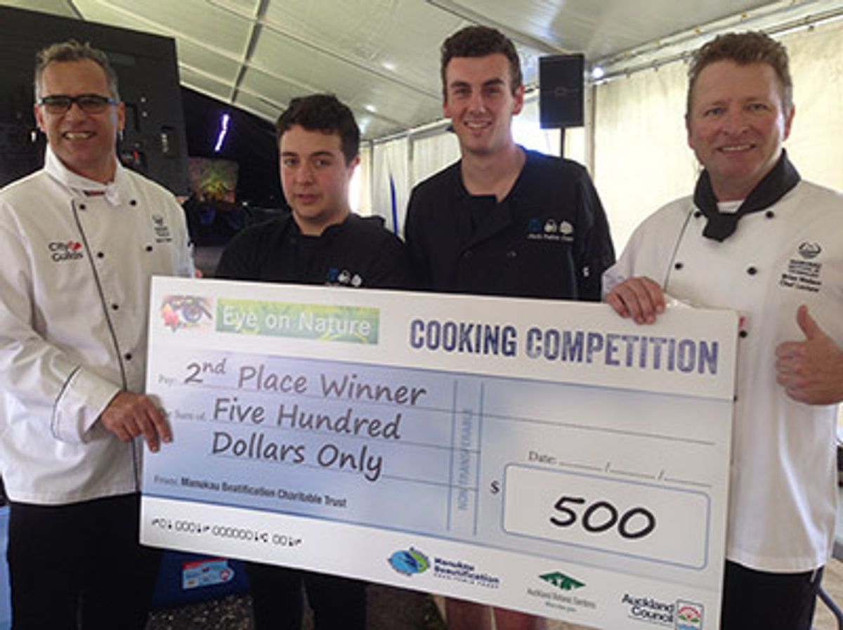 Over the weekend, talented Year 12 Food Technology students, Benji Manning and Lewis Elliot joined other teams of aspiring secondary school chefs to be put through their culinary paces in a Masterchef-style cook off held at the Botanic Gardens in Manurewa. As part of the ‘Eye on Nature,’ event, they worked to the theme: 'Edibles: From the Ground to the Table,’ preparing, cooking and serving their dishes in front of a live audience.