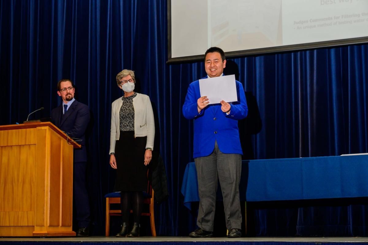 The prizegiving opened to the sounds of our Middle School Pipes and Drums band. Our Senior Te Reo Māori students, with support from Mr Martin and Whaea Ms Jasmine Martin, welcomed all guests with a powerful and moving pōwhiri. Guest speaker, Isla Christensen, from 'Nanogirl' was present to share the adventures of Science with some fiery experiments. Mr Dion Cowley from Saint Kentigern College's Science Faculty was the Master of Ceremony, with support from Miss Catherine Hunter of Mission Height Junior College. They called the award winners and the sponsors for each category of the competition, up on stage. Year 13 musician Tommy David performed a polished piano piece during the musical interlude before guests moved on to refreshments while viewing and having a dialogue with top winners who have their projects on display.