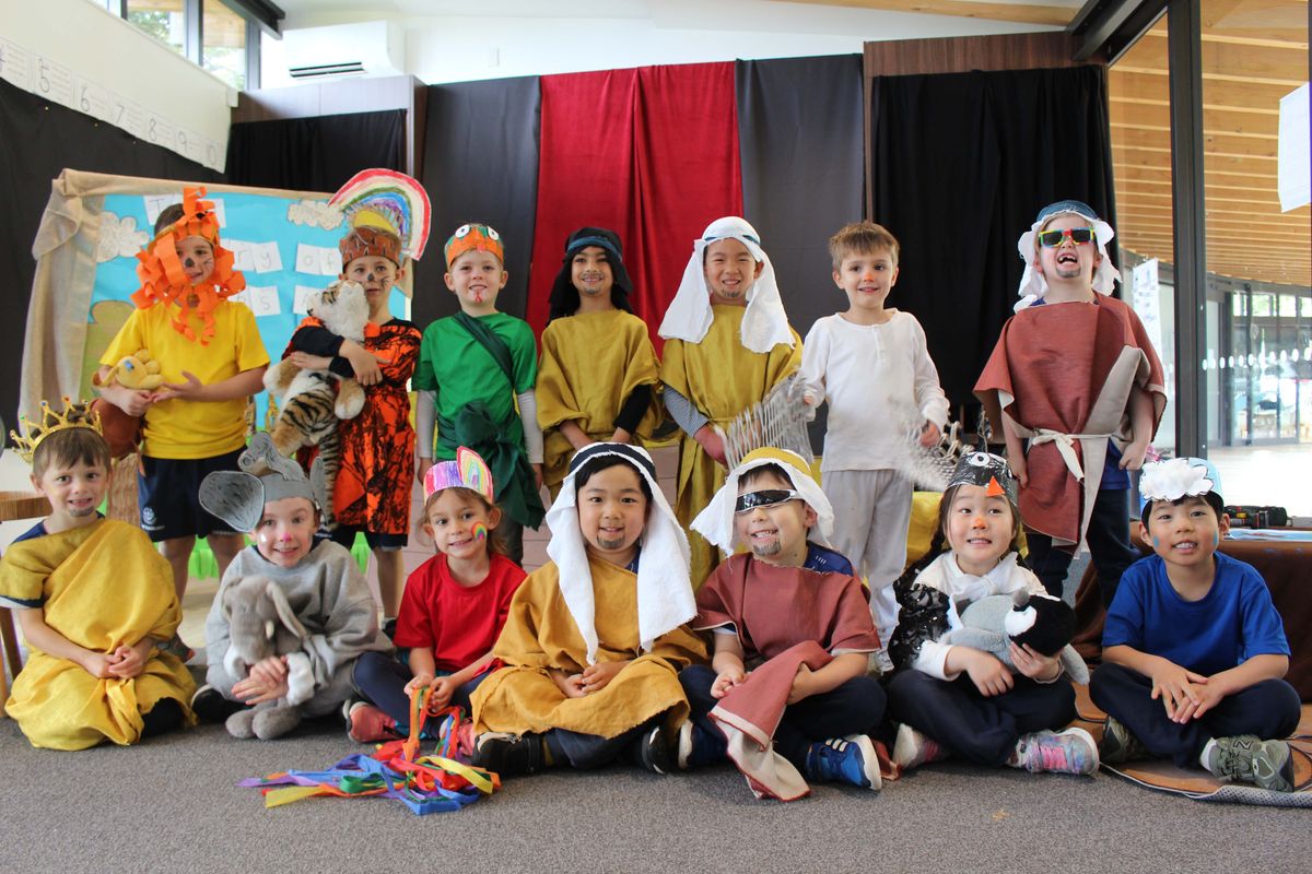 In the Foundation class, the oldest children presented a full-costumed retelling of Noah’s Ark, drawing on what they had been learning in Christian Education. Painted faces, animals parading in pairs, and a rainbow to end the storm delighted the doting audience, with the roles of God and the rainbow receiving particular smiles.
