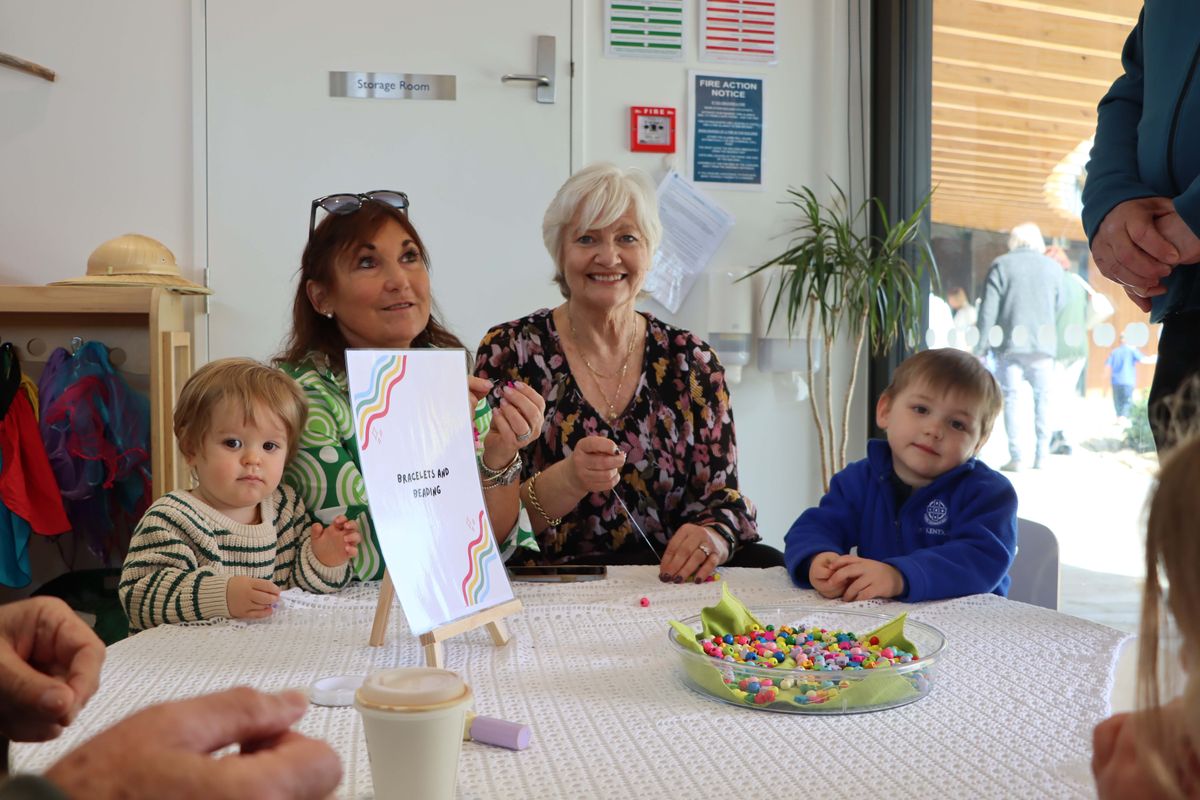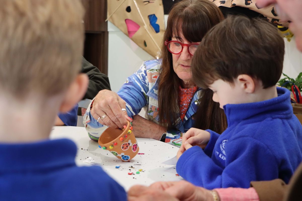 Meanwhile, the youngest room had prepared thoughtful keepsakes for their visitors, gifting handmade cards with bookmarks tucked inside. They then joined forces with their grandparents to decorate pots and plant sunflower seeds; a task relished by the real green thumbs, who helped scoop the soil and settle the seeds into place.