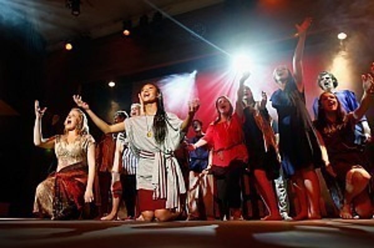 A contemporary, musical take on Verdi's classic tale of the timeless bond between an enslaved Nubian princess and a high ranking Egyptian soldier, Elton John and Tim Rice's version of Aida was a perfect production choice for this year's senior musical. With a pop-rock score that featured stirring ballads and rousing choral numbers, the stage was set for an exuberant show that told a tale of true devotion. Would love blossom or would the young lovers be forced to part forever? Each is forced to choose between love for their country and love for each other as the vast cultural differences of their two warring nations threaten to doom them for eternity.