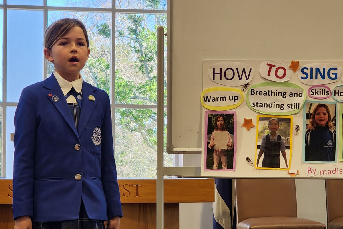 The finalists developed their pieces for their respective presentations based on the theme ‘Discovery’ using a variety of different public speaking techniques. The competition began with the Year 4 finalists sharing their talks based on a favourite skill or activity to a hall full of students and parents. Although a scary moment for these young finalists, they all held their own. It was Madison Charteris’s sweet singing demonstration and explanation that gained the adjudicator’s attention and first place.