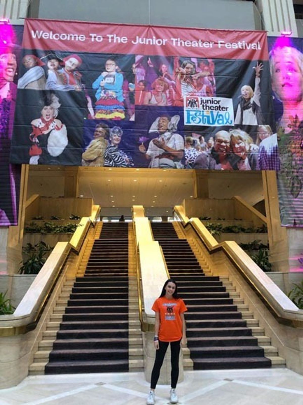 Scarlett reports: The primary purpose for this trip was to represent NZ in the 2020 Junior Theatre Festival in Atlanta Georgia, which involved performances, adjudications, and feedback. From the time we were selected until we took the flight to New York in January 2020, we saved and fundraised for the trip. We also sent a video of us singing a song of our choice, and an introduction to ourselves. In November 2019, the music and choreography was sent for us to learn, before we arrived in the US to start rehearsals. Our team consisted of 43 talented young students from all over NZ, which meant the first time we all met together to rehearse, was our first day in New York City.