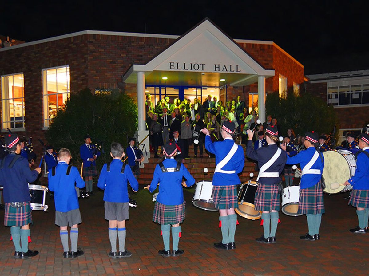 On Saturday night, our 2nd Pipe Band, including pipers and drummers from the Boys’ School Band, got the Ceilidh underway, playing in Elliot Quad, before MC for the evening, Principal of the Middle College, Mr Duncan McQueen, put his loud hailer to use, to inject some military precision to the chaos of a Grand March – the traditional means of entering. With instructions to ‘merge like a zip,’ couples entered the hall in fours, then coming together in eights and finally into lines of sixteen across Elliot Hall, in an amazingly smooth manoeuvre as ‘returnees’ shepherded ‘newbies’ across the floor.