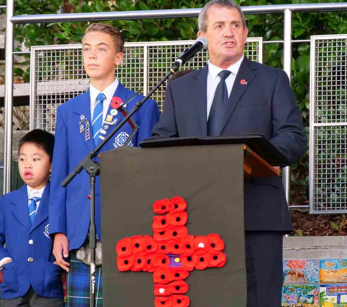Students from each of the schools had a part to play in the service with Boys’ School Head Prefects, Archie Nightingale and George Beca each taking a reading. George highlighted the misery of the Gallipoli trenches, reading Corporal George L. Smith’s first-hand experience of life in a cramped dug-out. Girls’ School Head Girl, Lola Wiltshire read the evocative Western Front poem, ‘In Flanders fields the poppies blow, between the crosses row on row’ before Lily Kate Umaga and Sharmaine Tapling bravely sang the first verse of the congregational hymn, ‘Abide with me.’