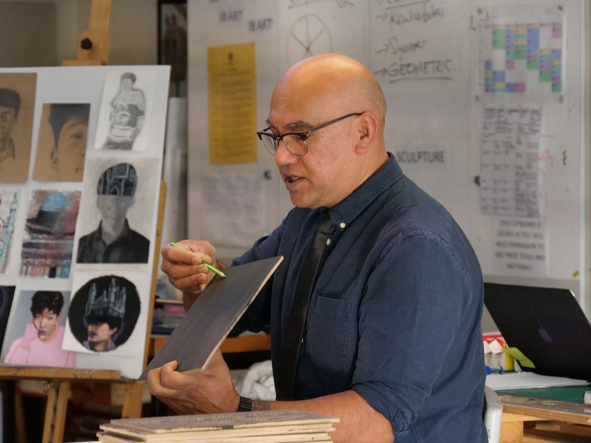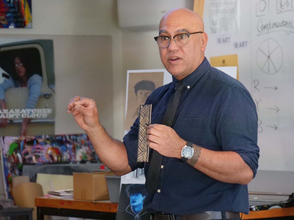 The College would like to extend their thanks to renowned artist, Michael Tuffery, who spent a week at the College working with our Year 11 NCEA Level 1 Visual Art students, guiding them through a woodblock cutting and monochrome printing process.