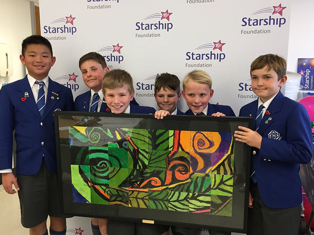 On behalf of the class, Ricky Shen, Astin Palenski, Max Irwin, Bruno Cullen, Josh Daly and James Chambers delivered the artwork to Starship Foundation this week – they thought the piece was fantastic! Well done 6AW!