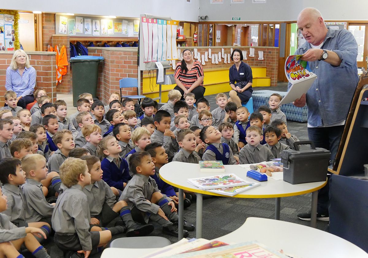 On the first day of the new school term, the Boys’ School invited author, artist and storyteller, Stu Duval to open Book Week.