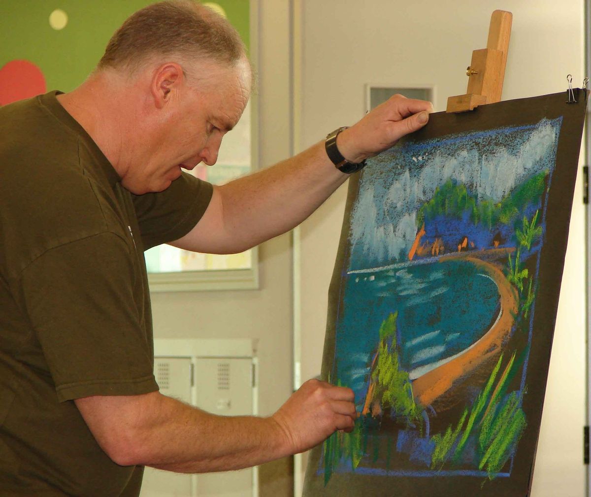 A generation that has grown up with colourful, instant, interactive entertainment at the press of a button discovered the power of the spoken word today when Stu Duval, published author, illustrator and renowned story teller, visited to work with our Year 7 students. Setting the scene for his tale by creating an original pastel artwork, Stu took the students on an hour long journey from the black sands of Piha Beach to the killing fields of Gallipoli and back, in a spoken story of courage and romance during the First World War.