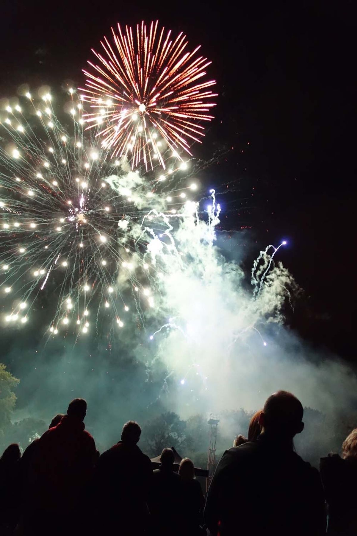 The Boys’ School Jazz band was first on to the entertainment stage but, sadly, their chance to play to their biggest audience of the year was short-lived when the heavens momentarily opened and they scuttled for cover. The weather is a critical factor in the success of the evening and despite the early downpour, there was no great cause for concern as the weather maps promised favourable conditions for fire show.