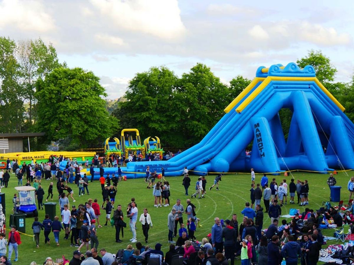 As the Boys’ School and College rock bands entertained, drawing a mini-mosh pit of youngsters in support, others flocked to the rides, purchased wrist band at the ready, to take advantage of as many turns as possible while the daylight lasted. Amongst the adrenaline-filled fun this year was the ‘world’s tallest inflatable slide.’ As some found to their cost, once they’d scaled the steep climb to the top, there was no going back. There were more than a few wide eyes as they whizzed down the slippery slope!