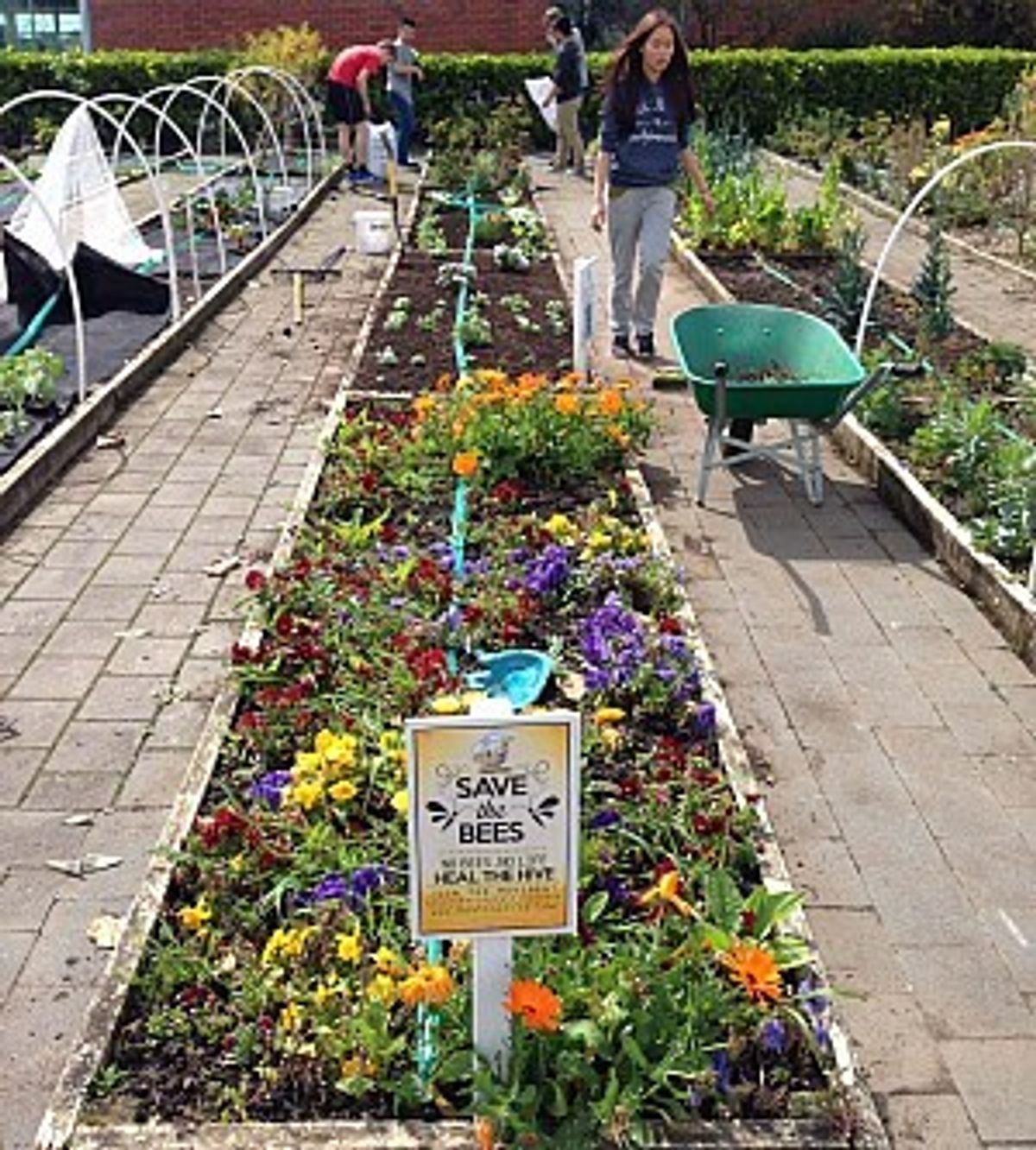 The good work continued over the weekend. This month is Bee Awareness month and many students came in over the weekend to plant rows of trees, bushes and flowers to attract bees into the Butterfly Gardens.