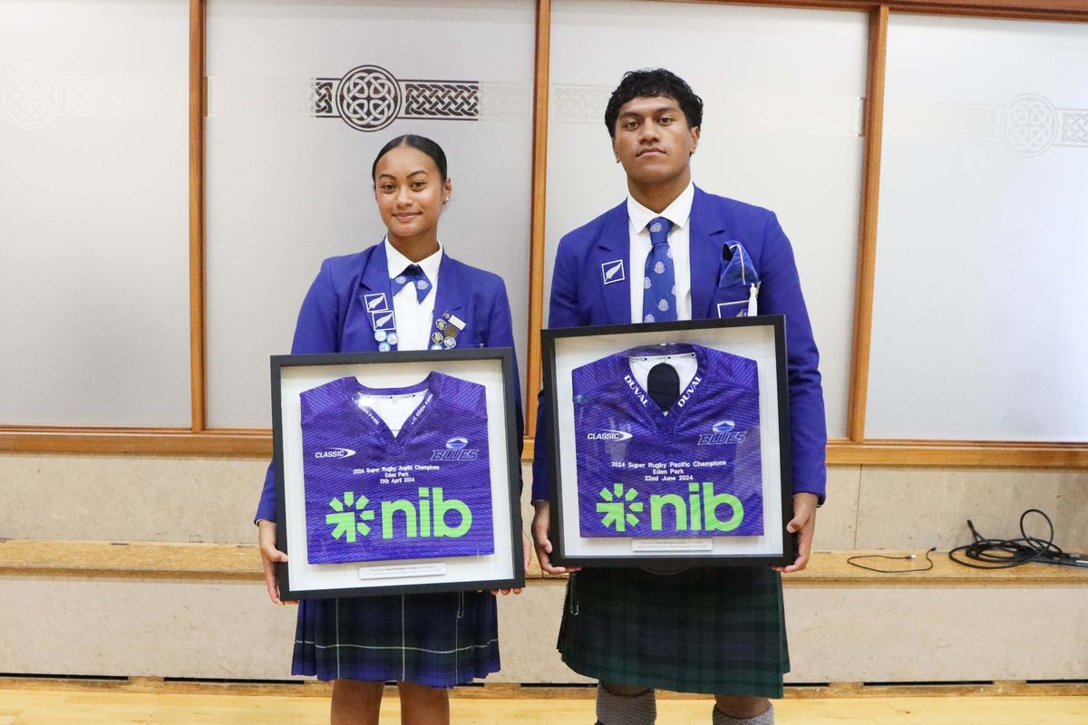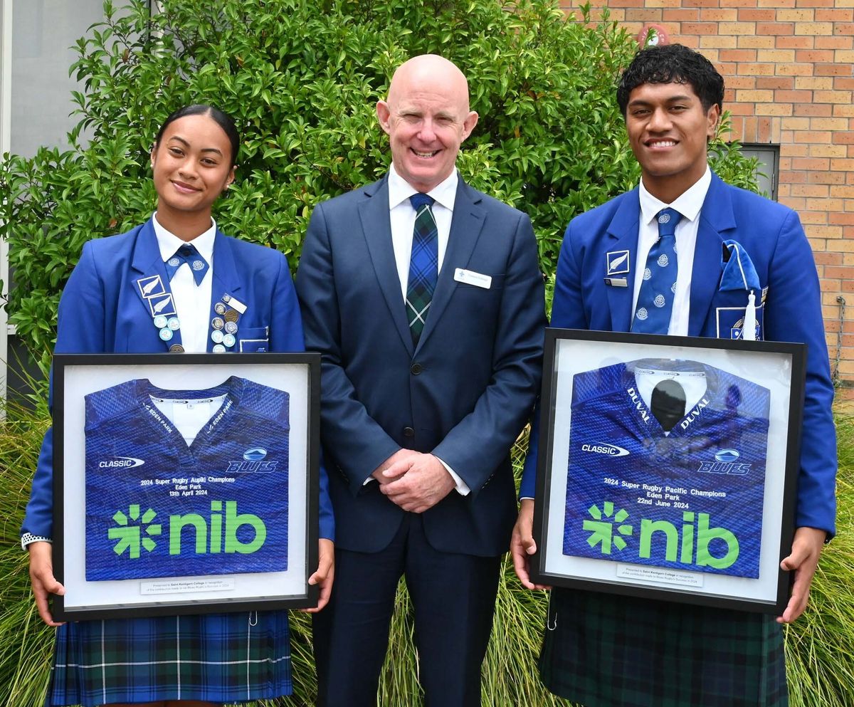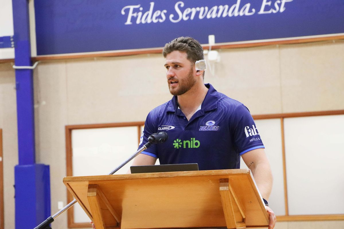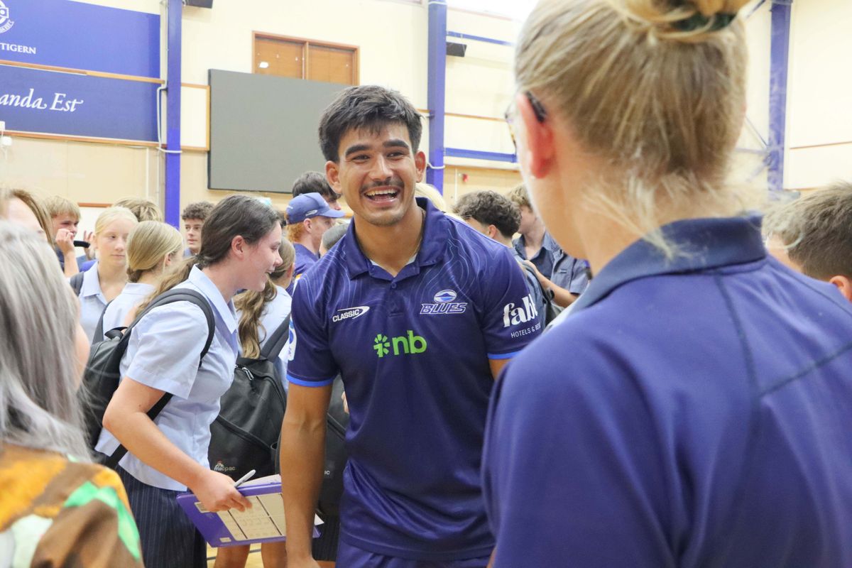 We were privileged to welcome back a few familiar faces on Thursday 20 February - alumni and Blues players Dalton Papali’i, Finlay Christie, Sam Nock, Ben Ake, Xavi Taele, and Jaymie Kolose. They returned to the College on behalf of the Blues to recognise and thank Saint Kentigern for our College’s role in their development. The Blues Rugby players presented the College with framed 2024 Blues Super Rugby Pacific and Aupiki Finals jerseys, complete with a special plaque of thanks.