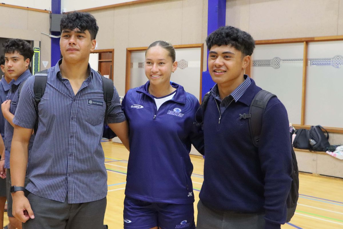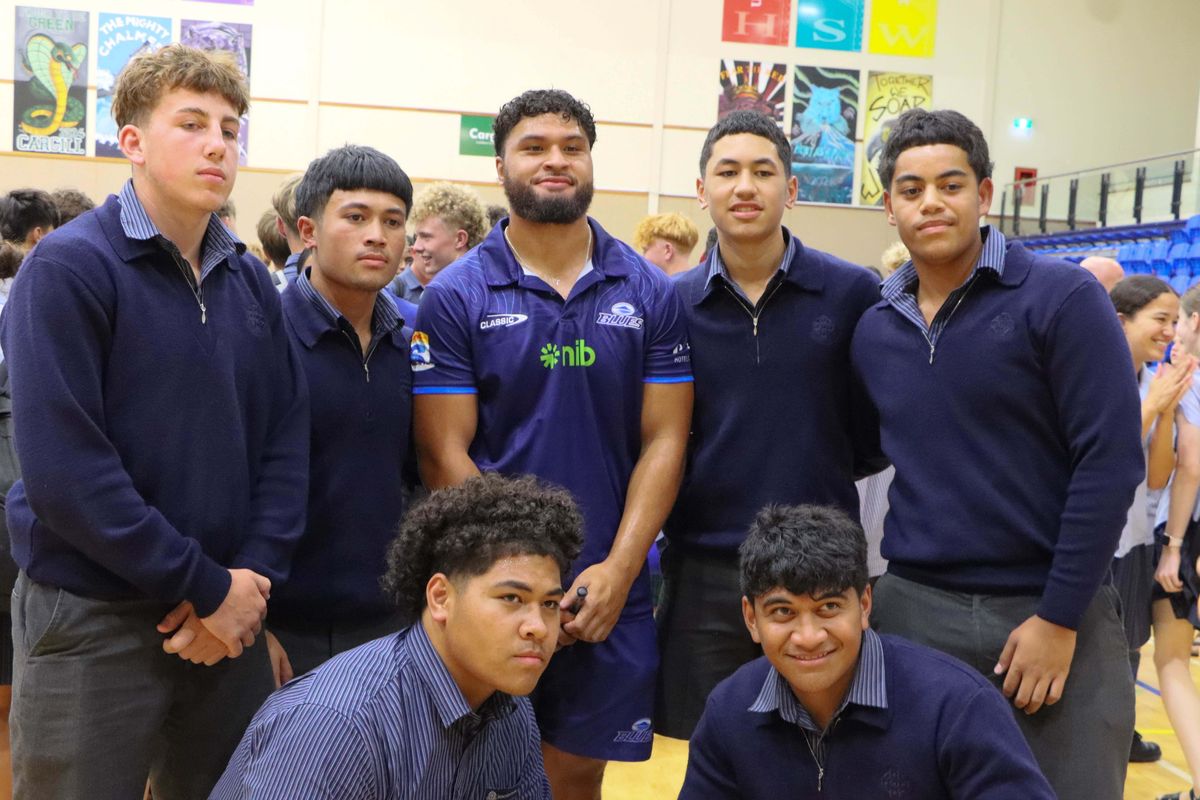 As part of the presentation, the jerseys were handed over to our College Sports Prefects, Siale Pahulu and Ashleigh Tuumaialu, representing the next generation of athletes striving to make their mark. The visit was also a chance for students to meet the players, hear their insights, and see the strong connection between the College and its sporting Alumni.