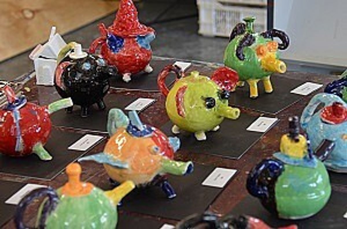 In this project, two bowls were made on the wheels using a mold to create the body for a teapot. These bowls were then joined together with slip and then added to with other bits of clay to make the spout, handle, lid and other details of their teapot. Whilst most boys chose to make an animal teapot, others got creative with abstract ideas and had some fantastic, decorative results. These were then fired and glazed in bright colors. Most teapots were made to function and can now brew and pour a cup of tea.