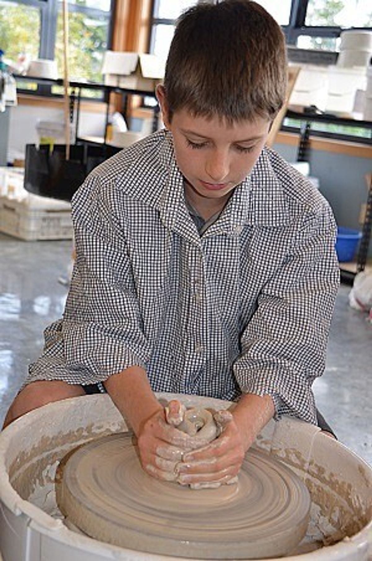 Each boy has had a chance to try the wheel to see if they could achieve the basics of shaping - or as potters say, ‘throwing a pot down.’ It is not an easy task and can bamboozle adults let alone children! At the first pass, most of the boys struggled, but even the failed result was enjoyable and a heap of fun, leaving the boys wanting another turn. There was a definite determination to achieve the skill!