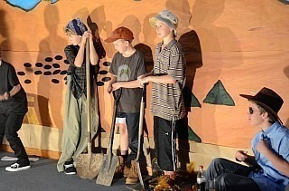 Year 7 each produced a short play based on a scene from a chosen book or poem. ‘The Highwayman,’ was presented as a contemporary, part digitised rendition of Alfred Noyes’ poem. A moving scene from War Horse – when Joey is auctioned after the war – was well retold. The final piece was a scene from the well-loved novel, ‘Holes’ by Louis Sachar.