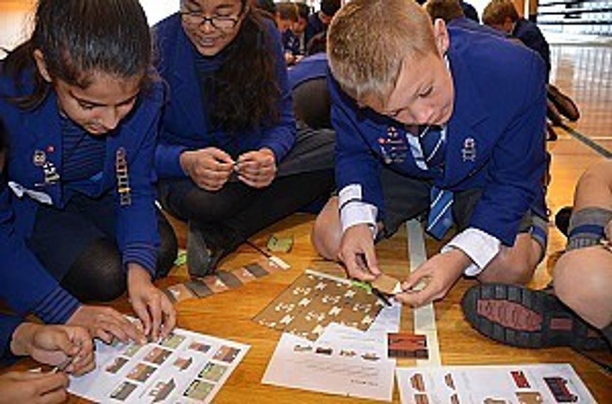 Primed and ready for a day of learning, the girls and boys then headed to the Sports Centre for a ‘mass simulation’ game. They were divided into countries and tasked with developing their assigned communities on a local level by building houses and farms (to be cut out and origami folded!) on allocated squares of land. The game started out quietly with only a little interaction amongst the students from the range of schools but when they were given the power to further develop on a global scale, things soon heated up and the natural leaders began to emerge as bargaining for land acquisition got underway. Arguments soon erupted over whether alliances or invasions were taking place! In debriefing, the idea was discussed that the game was more about ‘humanity’ than ‘leadership.’ Each country had been given sufficient to survive but avarice and power had taken hold and acquisition became a driving force – the root of so many conflicts around the world. The students had much to reflect on during shared morning tea.