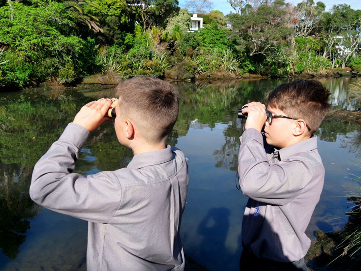 Prior to heading out, the keen group of Boys’ School bird enthusiasts had been practising online quizzes and listening to sample bird calls to identify New Zealand’s birds. Armed with Landcare’s tally sheet, which included helpful photos, the boys set off for the Martyn Wilson Field across from the Shore Road Campus. Setting up in a range of spots from mid-field, to under the tree line and down by the water, the binoculars came out and the count began.
