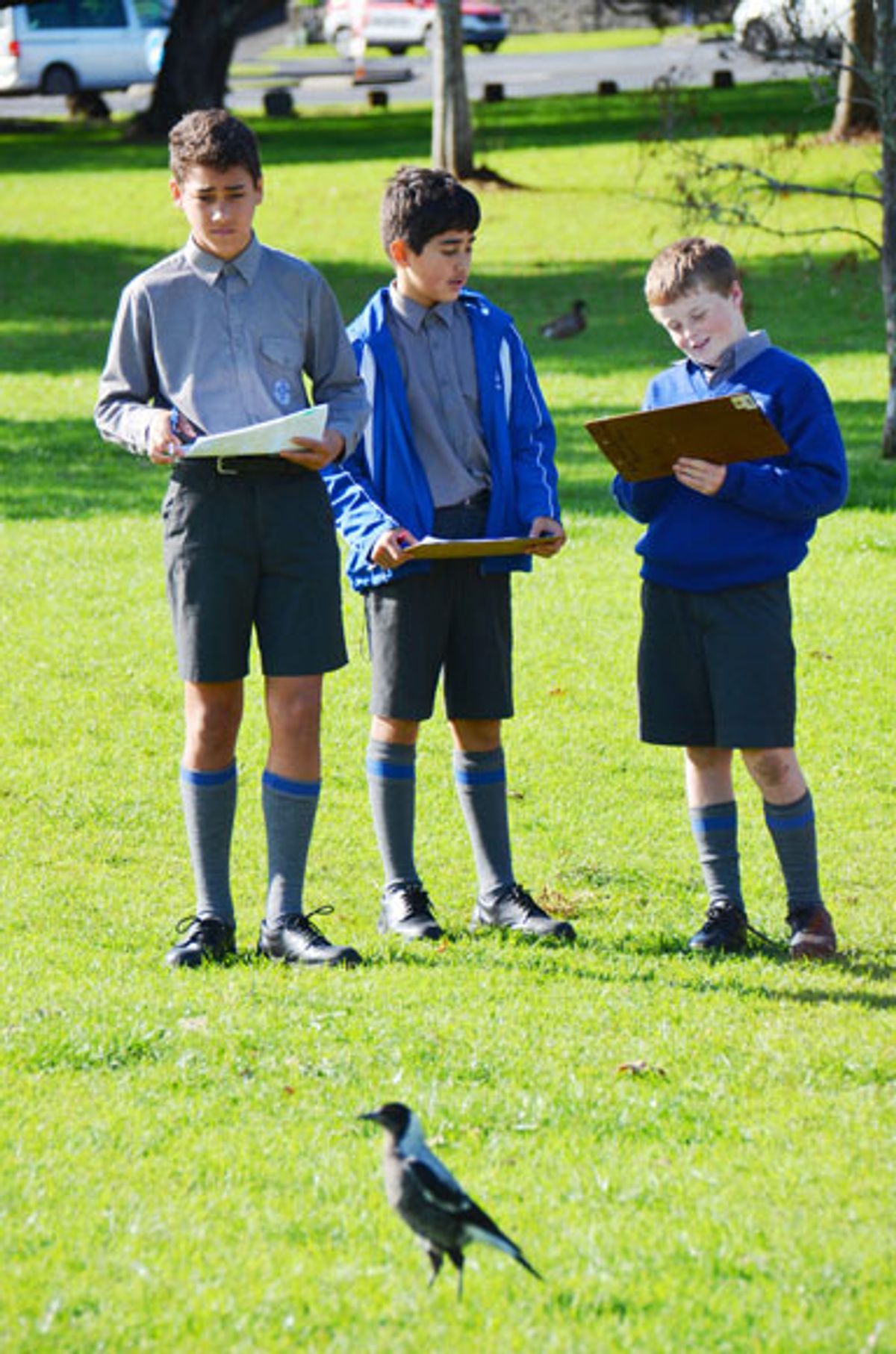 Today the boys came to understand the importance of listening for bird song, to be able to spot birds such as tuis up in the branches. Whilst there was a proliferation of sparrows down on the field, the boys were soon marking off a broad range of bird life.