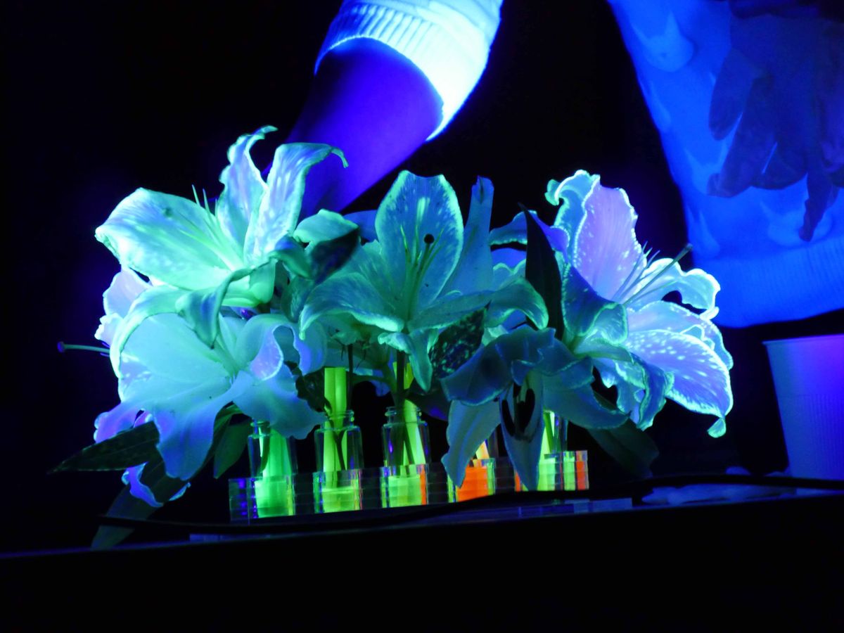 As an example, she explained that photons are currently being used for cost effective technology in animal husbandry, enabling farmers to focus on the production of either quality bulls for breeding or dairy cows for milk production. Dr Simpson along with her two PhD students, Andy Wang and Nina Novikova, made use of UV light to demonstrate fluorescence in some spectacularly 'highlighted lilies' that had been left to absorb highlighter ink up through their freshly cut stems. She encouraged the boys to make a hypothesis, take a risk and if it turns out ‘wrong,’ to learn from it.
