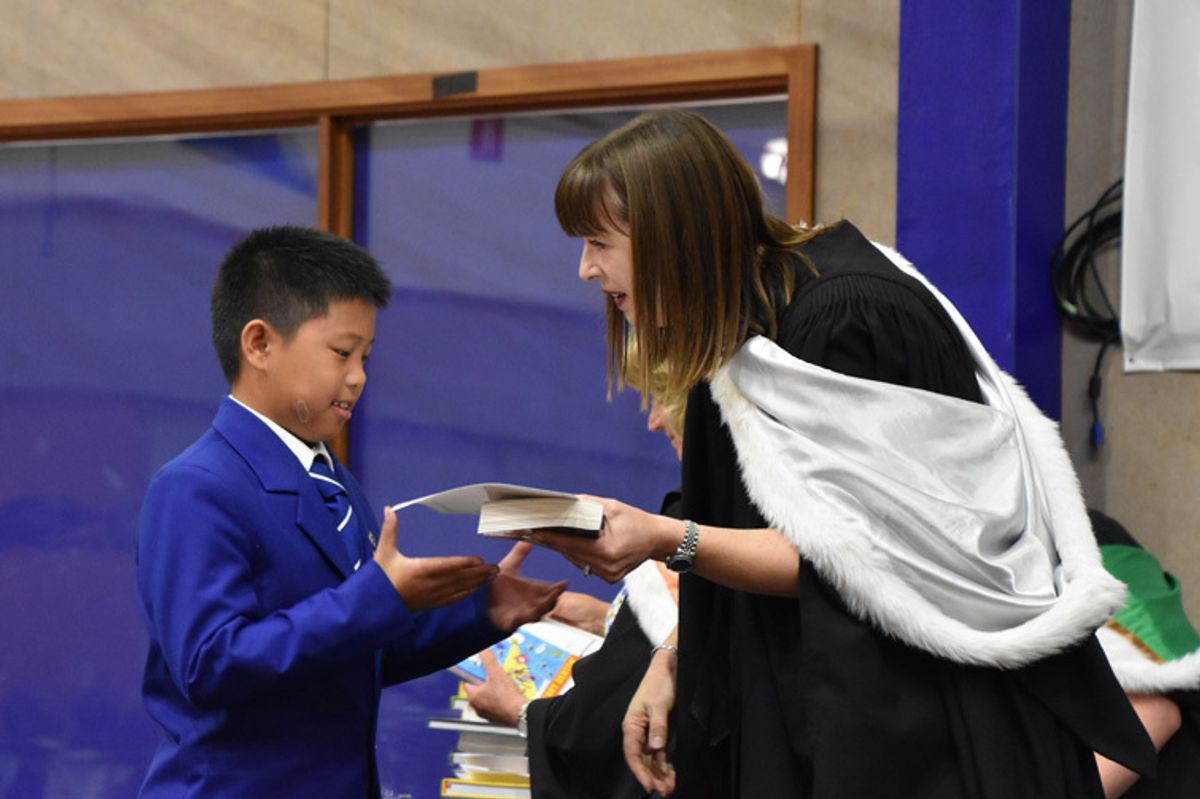 Following the address by Chair of the Trust Board, Mr Mark Conelly, the Music, Speech and Cultural Awards were presented by Mrs Rosemary Harris. Mrs Harris recently retired after 20 years of serving as a Trust Board member, most recently as Deputy Chair. She has always been a stalwart supporter of the Boys’ School and we offer our sincere thanks for her many dedicated years of service.