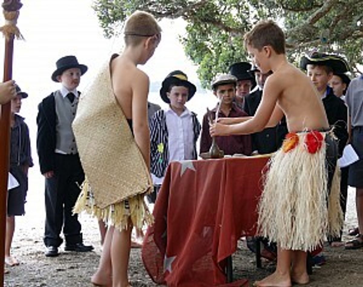 Following on from the success of last year’s outing to little-known Karaka Bay on Glendowie’s waterfront, this year’s Year 5 cohort followed suit, leaving school dressed in period costume to stage a re-enactment of the signing of the Treaty of Waitangi.