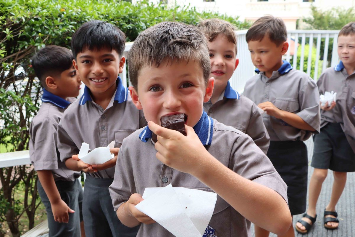 Finishing the service in tradition, the school sang Happy Birthday to Saint Kentigern before cutting the five Founders Day cakes. Birthday boy Dominick Toth had the honour of being the first to taste the school cake. A chocolatey grin left great anticipation among the students, who received their own slice at the conclusion of the service.