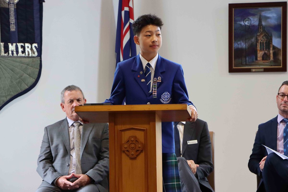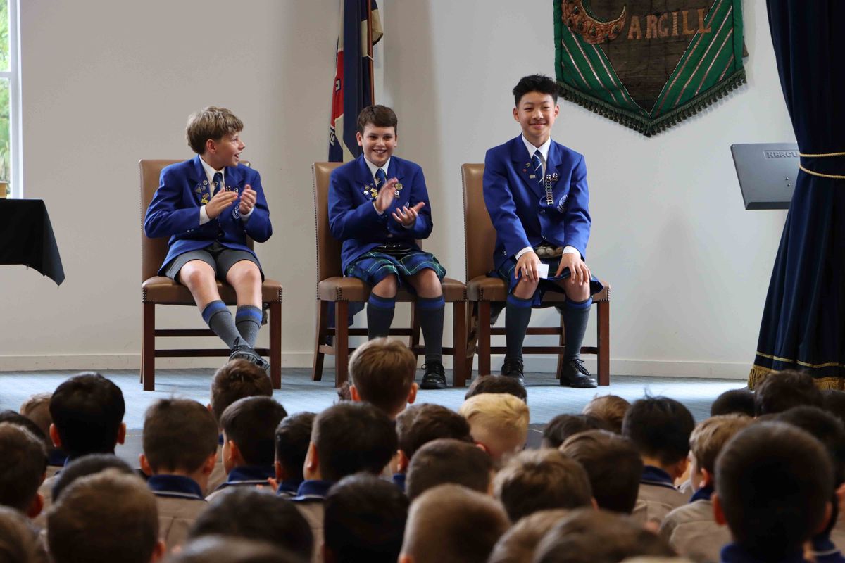 A light-hearted reminder of our school heritage came through the sixty-second challenge completed by Head Boy Edward Moon. He shared the story of Saint Kentigern within a neat one-minute limit. The strong start was followed by the House Prefects, who were tasked with sharing (also within a minute) the history of their House and the miracle of Saint Kentigern associated with it. Hamilton House finished closest at one minute and five seconds, earning the first House points of the year.