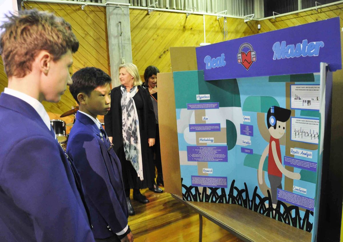 Before the guest presentations, parents had the chance to view the range of projects the boys have undertaken for the annual NIWA Science Fair. Topics ranged from measuring the electron flow of bacteria, testing soil for optimum pH levels to comparing the effectiveness a vast range of sporting equipment.
