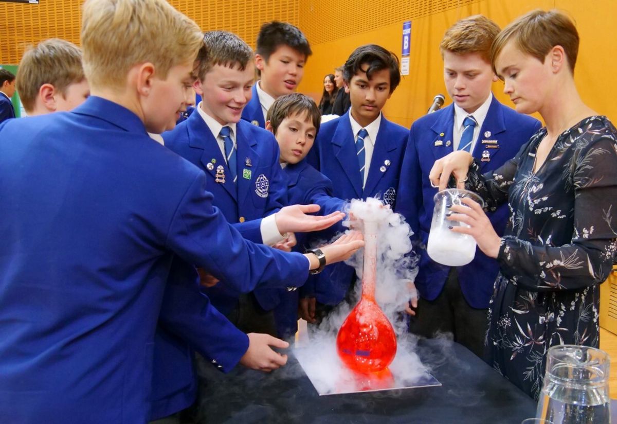 Our final guest for the evening, Blair Smith from ‘The Imagination Experience,’ has a mission ‘to inspire the next generation into the field of science in a time when the world needs science more than ever to address so many global issues.’ He certainly caught the boys’ imagination! From elephant’s toothpaste to clouds of steam, giant smoke rings and flaming soap bubbles, he knew how to entertain both boys and parents alike, whilst keeping the questions to boys flowing. He reiterated Dr Kralicek’s words to take failures as challenges. Ask why it didn’t work, ask how it could be done differently and be forever curious.