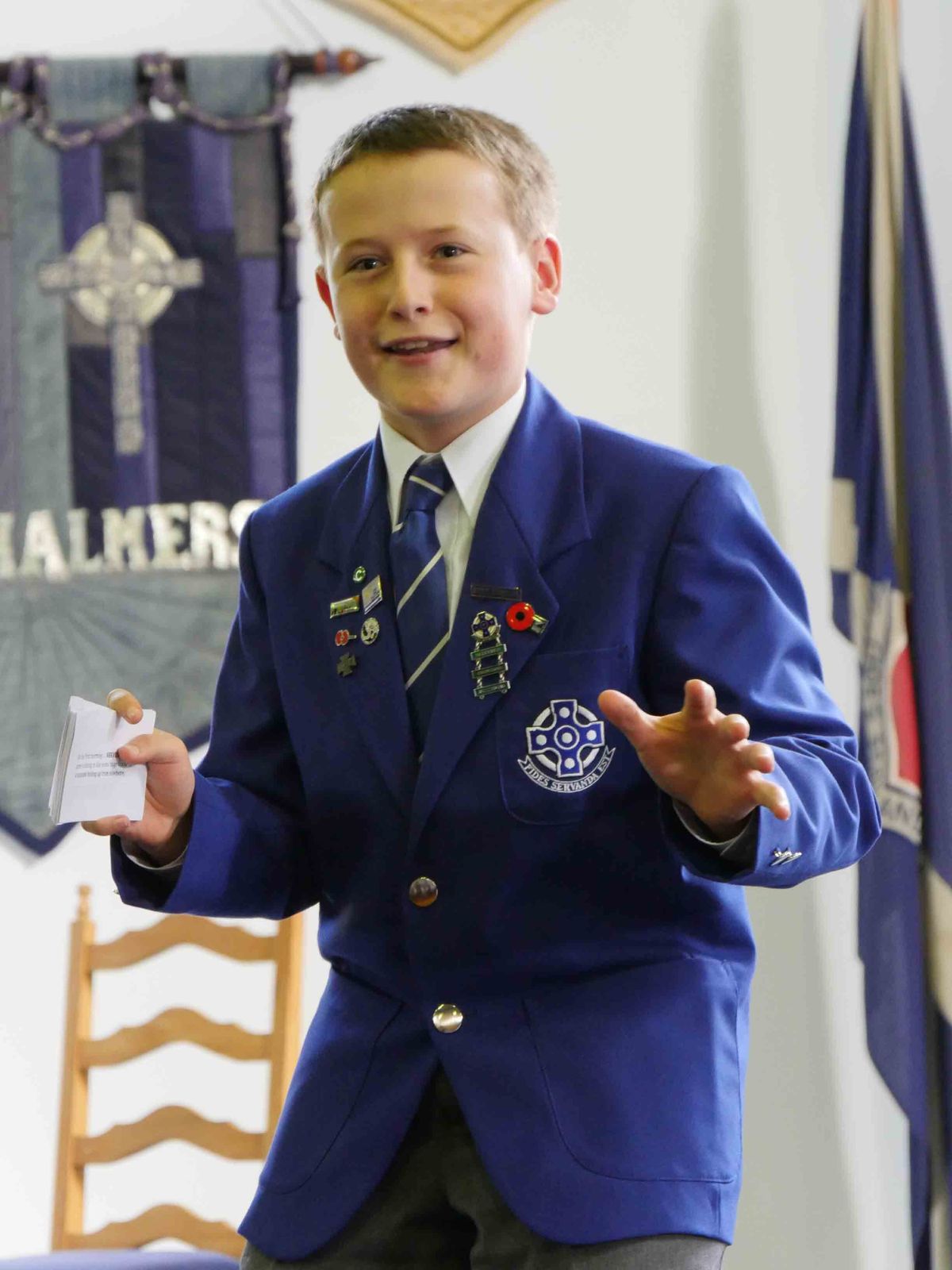 The winner of this year’s Elsie Moore Memorial Cup for Junior Speech was Fionnbarr Steel Smith who spoke on ‘The Meaning of Parent Talk’ . Fionn expressed: “Over the years I’ve learned that what parents say and what they mean are not always the same thing. For instance, when my parents say that money does not grow on trees, I suppose that it is possible that my dear parents may have failed to notice the quality education I receive here at Saint Kentigern and that I am well aware that there is no such thing as the money tree.”