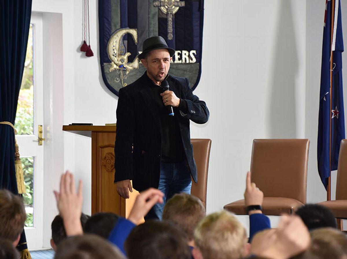 As part of their literature programme and study on writing and novels, the Boys’ School Year 7 and 8 students were pleased to welcome award-winning Kiwi author, Brian Falkner to present to them last week. Well known for his young adult books, particularly, ‘The Tomorrow Code’, ‘Brain Jack’, ‘The Project’ and ‘The Assault’, the boys were excited to put a face to the name and listen to Falkner talk about reading, creative writing, and the publication process.