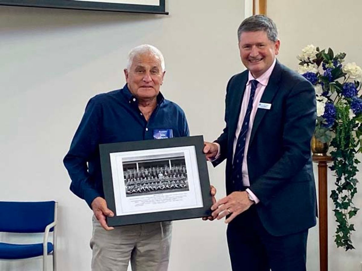 As is tradition, any foundation student of Bruce House who attends a reunion is presented with a framed photo from 1954 of himself and his fellow boarders. Mr John Rennie was presented with his frame to join the ranks of the six former pupils who received theirs last year.