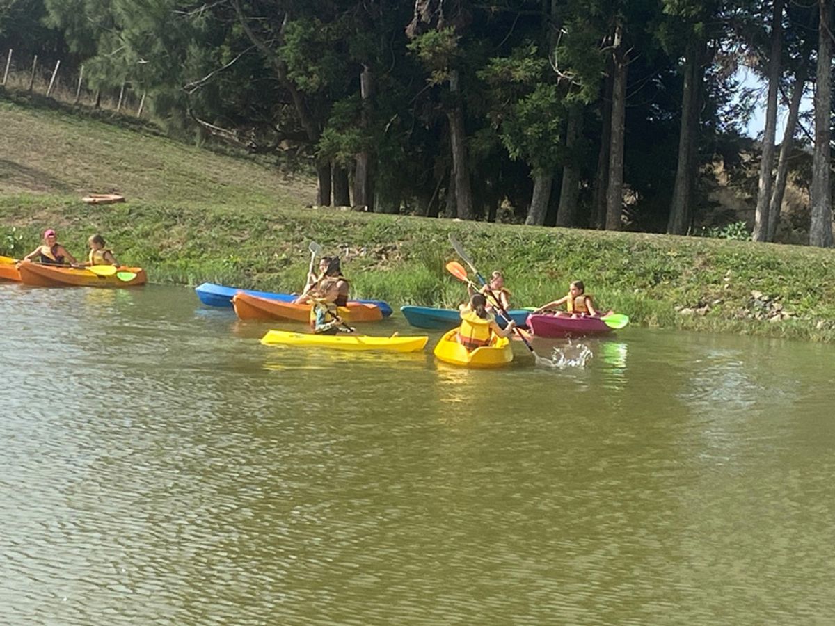 The Lake Activities was a great chance to cool off in the lake. Instructors took them for a kayaking lesson which was a first time for some. They also completed a very complicated Rope Maze and the built over water Balance Island, that had them walking nervously over logs, wobbly bridges and not to mention, dangling off wires. Then it was off to the water slide, made even speedier by parents using a rope to slingshot students down the slide.