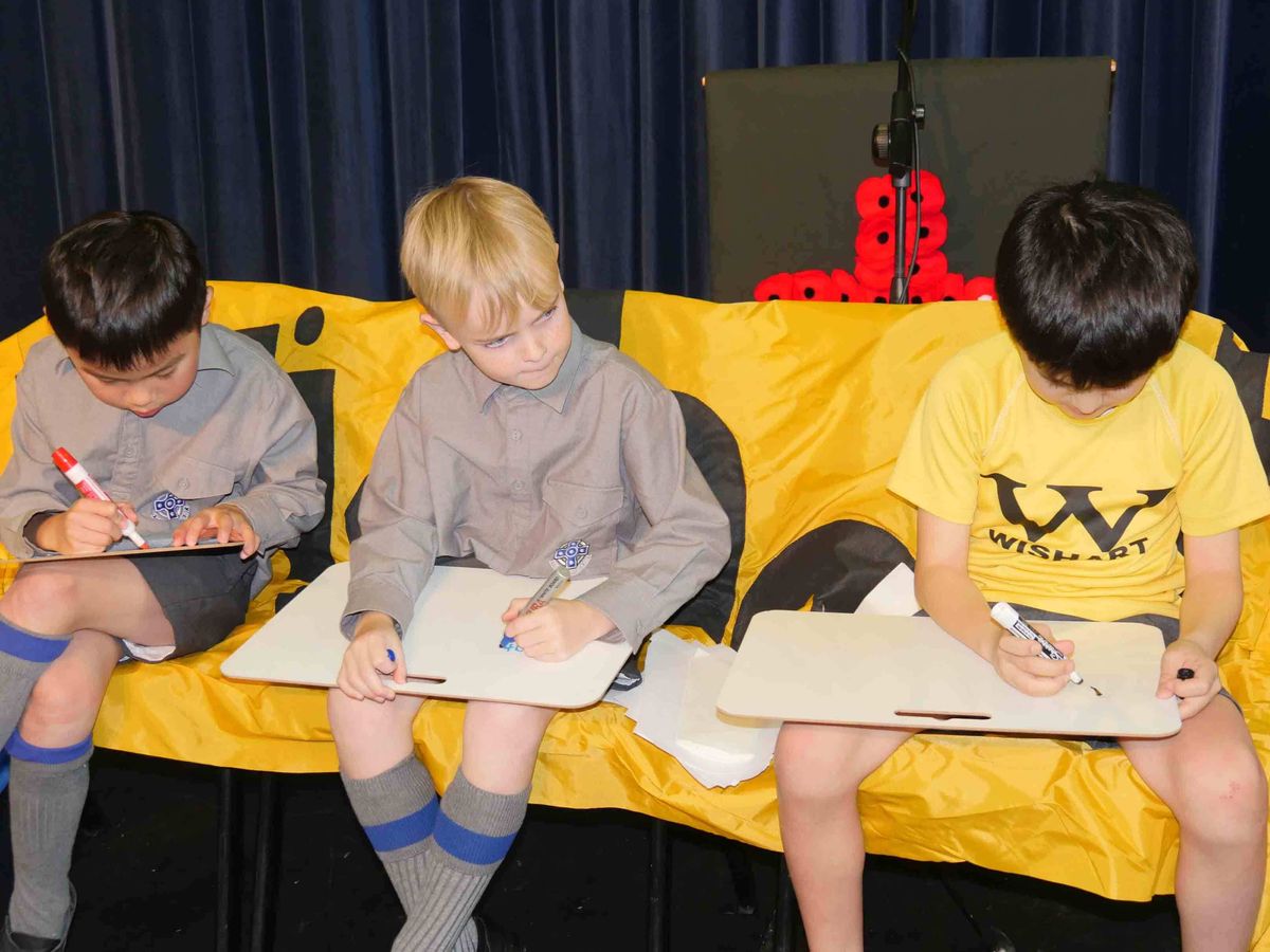 Hosted by Head of Art, Mr Tom Barter, in a ‘most fetching’ wig, the competition took the style of a lively television game show as the boys were put through their paces. Unlike a traditional Spelling Bee where contestants take it in turns to spell a word, the twelve contestants listened to words, phrases and instructions from a soundtrack to quickly transcribe to a personal whiteboard. No pressure but - speed was of the essence – and there was no conferring, the scrutineers made sure of that!