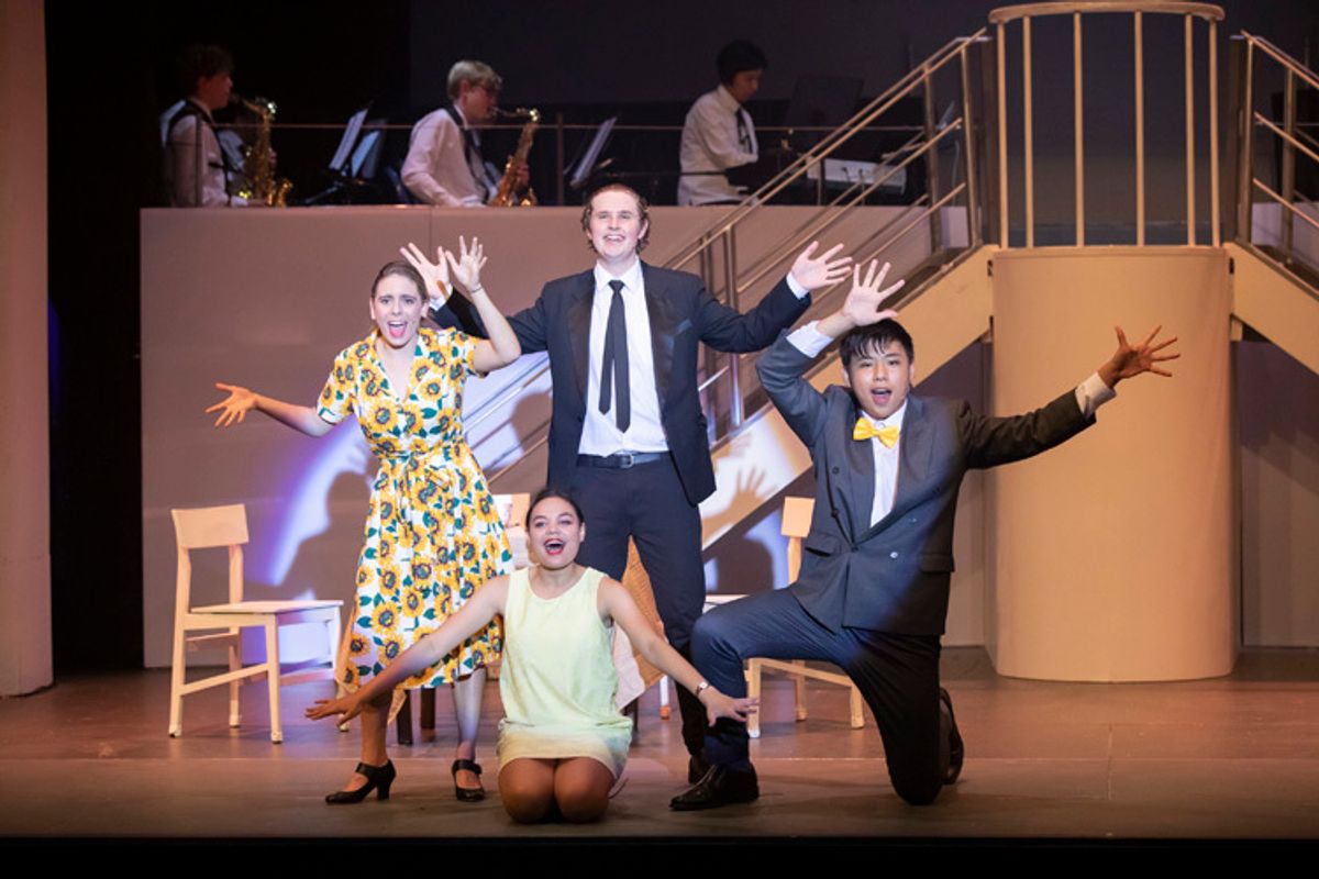 Year 13 student, Sam Everitt took on the leading role as Frank, the precocious teenager who sets out to carve his own fame and fortune when his family starts to fall apart. Travis Allen (Year 13) plays Frank’s bombastic father, Frank Abagnale, Sr. whose emerging downfall brings an edge of darkness to the tale. Frank hero-worships his father but loses respect for his French-born mother (Lucy Lyons, Year 13), when he catches her cheating on his father.