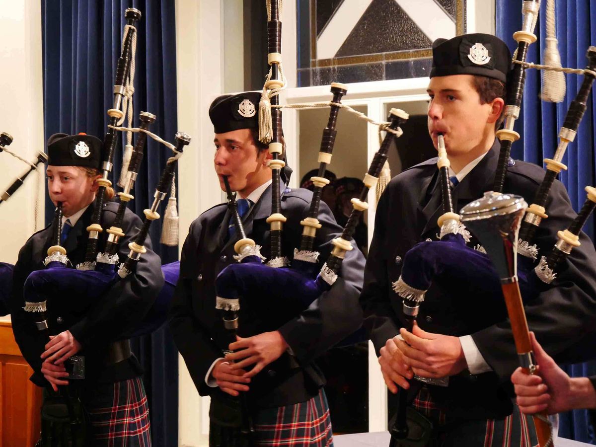 On a crisp and clear night, the guests were welcomed to Elliot Hall by our younger 2nd Pipe Band, who were also joined by the pipers and drummers from the Boys’ School.