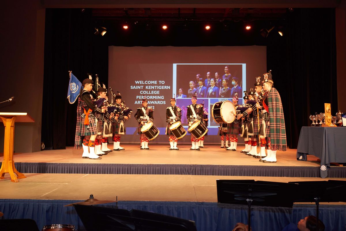 The audience hushed as the ceremony started with the familiar song of the Saint Kentigern Pipes and Drums. Immediately following, the guests were welcomed by Ms Sara Standring, who expressed her gratitude to students, staff, and parents who tirelessly worked to make the most of a year that started unpredictably. Arts prefects Melody Lui-Webster and Tague Bradley followed, addressing the audience by summarising all the standout achievements, setting the stage for the acts and awards to follow.