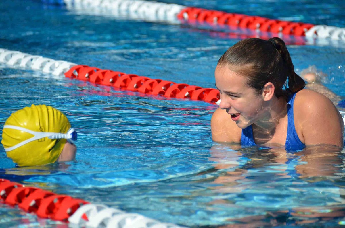 Later in the week the sun shone again as the Junior girls in Years 1-3 took to the pool with help from their ‘big sisters’ in Year 8 where needed. Smiles were aplenty as the girls put their recent lessons to use, remembering their two hand touch at the end.