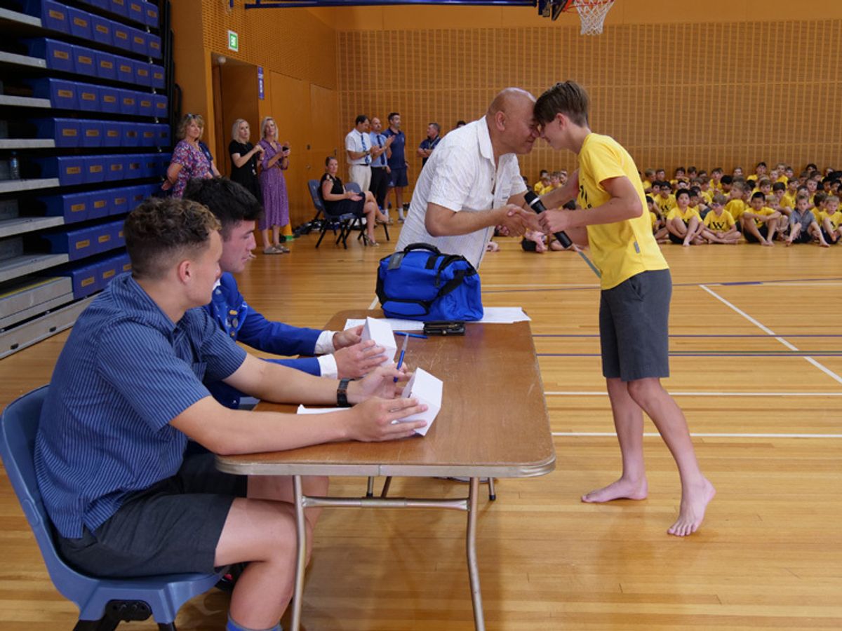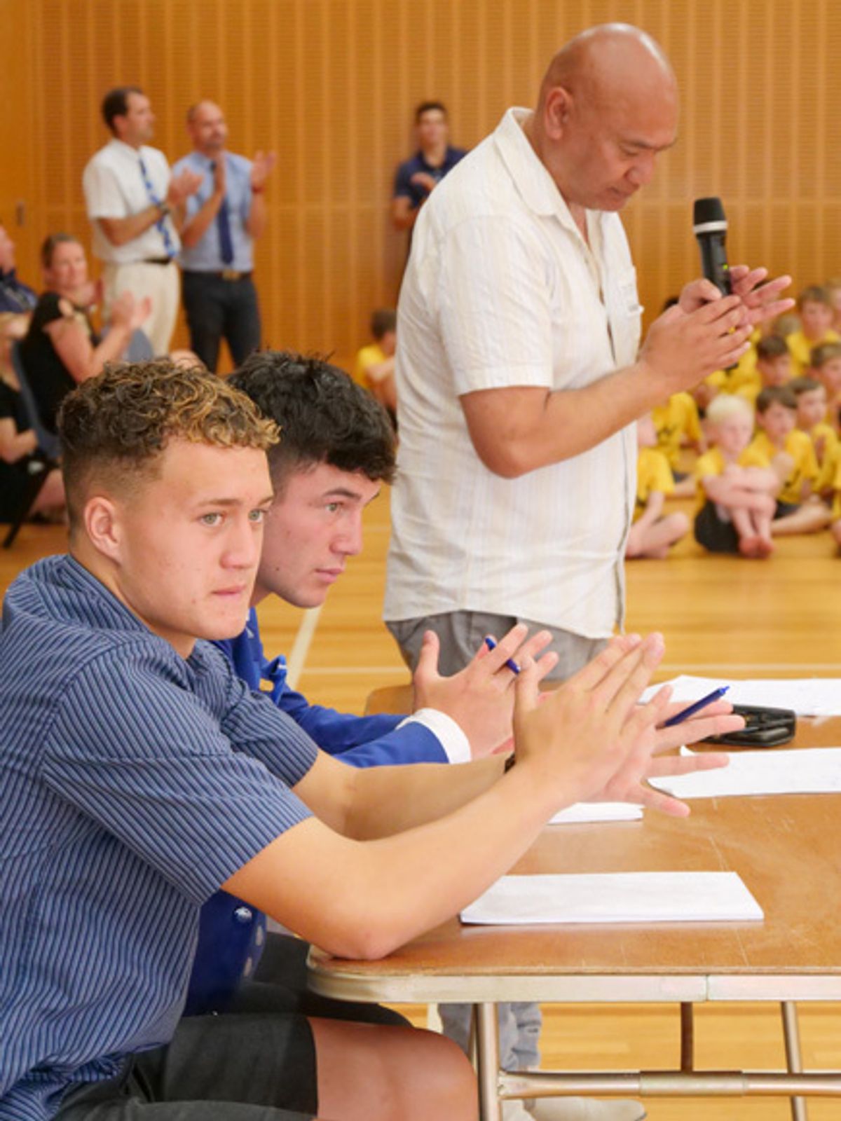 Judging criteria was based on actions, pronunciation, synchronicity, facial expressions, leadership and the overall impact of the performance. With marks from each of the judges tallied, Chalmers was declared the winner. The whole school of over 600 boys then took to the floor to perform the haka in unison, led by Marco Alpe – what an amazing sight and sound as the boys gave it their all! Matua Nelson, Rawiri and Jade then rose to their feet and performed the new College Haka in response!