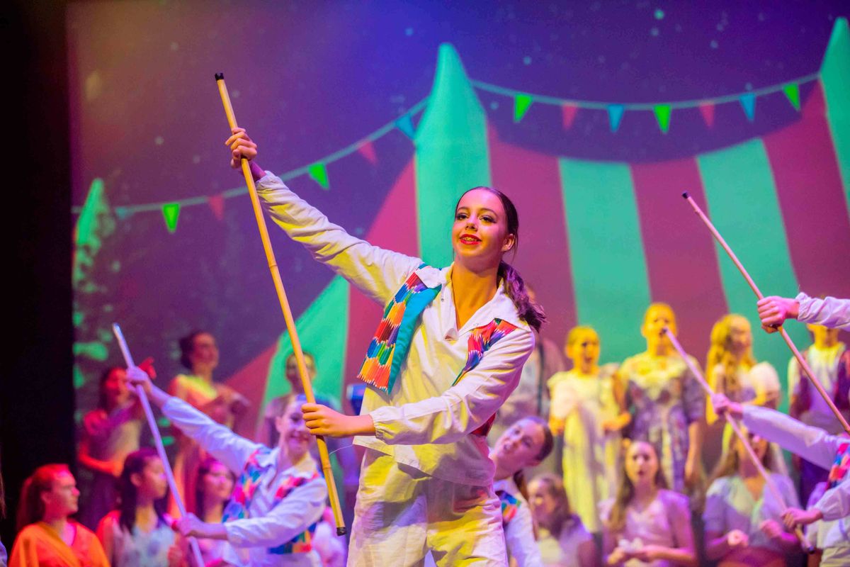 Dance groups featured throughout the show, setting the stage alight with action. From the great machines in the candy factory, bathing belles on a beach, to the delightful, twinkling, night-time backing for the lullaby, ‘Hush-a-bye Mountain, the exuberant ‘Me ol’ Bamboo’ and the ‘Bombie Samba,’ it was clear that there is great strength in the dance programme at Middle College level and those on stage were loving dancing for an audience!