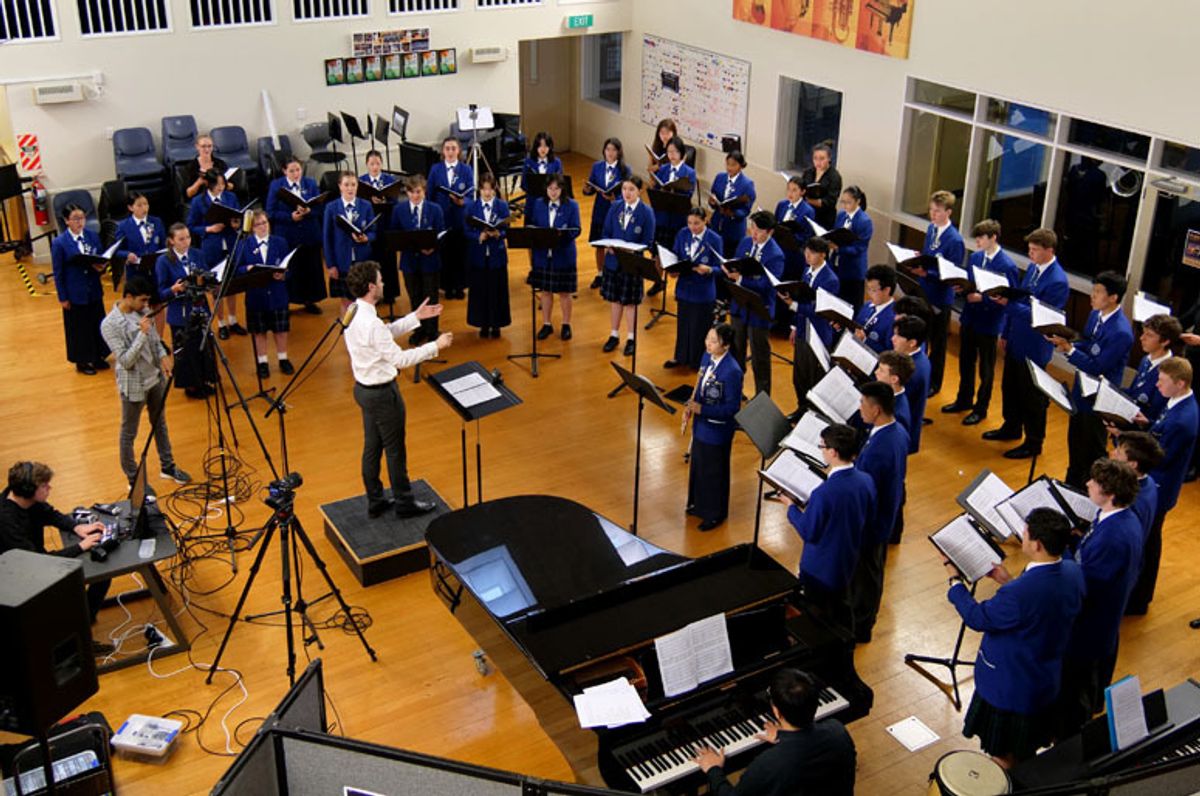 At the start of the year in February, we travelled to the School of Music at the University of Auckland, where we performed in our Choir Director’s Graduate Diploma Exam in Conducting. Over half the choir consisted of new members this year, which made the rehearsal process leading up to the performance very intensive. However, our keen choristers quickly adapted and formed a new ensemble sound, and with the help of a few Kentoris alumni, and members of the University of Auckland Chamber Choir, we managed to pull off a stunning recital. The recital included Vaughan Williams’s ‘Five Mystical Songs’, from our supposed New York and Canada tour in April. Our own collaborative pianist, Mr Kim was the baritone solo in this piece, and Year 13 student, Catherine Chang, was the piano accompanist for this monumental work. We are especially grateful to have been able to perform this piece in public, as the imminent lockdown prevented our New York/Canada tour from happening.
