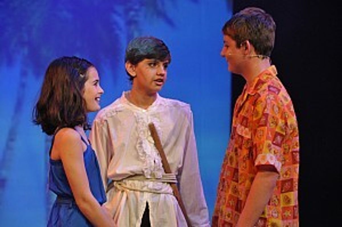 Now we meet the central character of this year’s show, ageing Duke of Rock n’ Roll, Vince Prospero (Isaac Samuels) who is also stranded on an island by his evil brother, Tony (Liam Braithwaite), with only his sweet, bubbly daughter, Annette (Ashley Potter) for company. Vowing to seek revenge for the wrong doing and put life back in order for Annette, Vince summons up Gidgit (Isabella Denholm), a bright and quirky, freewheeling, genie who longs to be set free to surf the world. The only other resident is an ingratiating, delinquent punk bikie, Moondoggie (Sam Elliot) who was stranded on the island when his mother ‘stood on a stonefish and died.’ Moondoggie is full of attitude and would like to woo the lovely Annette but Vince will have nothing of it. Sam gives a superb performance in this role, especially when he delivers up an aggressive rendition of ‘The Rebel in Us All’ with mindless acts of vandalism.