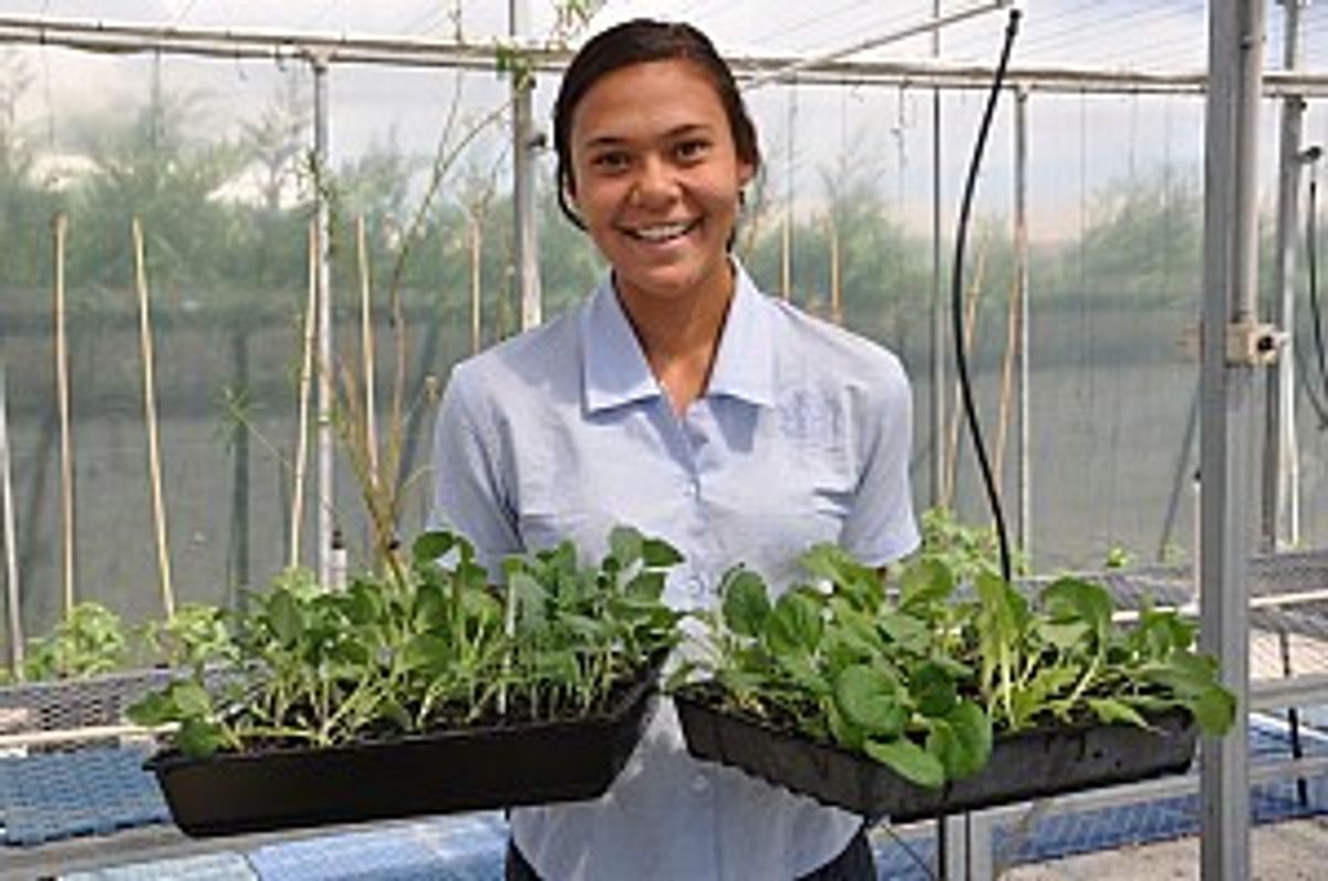 The first round of seedlings, grown by the College Environmental Group for distribution to primary schools, were recently delivered to East Tamaki Primary School to assist with their ‘Garden to Table’ programme. On a visit to the school, Year 11 students, Maximilian Ballard and Nicholas Allen, and Year 12 student, Kristina Tipene presented the seedlings to the Year 6 representatives and Principal, Ms Sarah Mirams to be planted in their school garden.