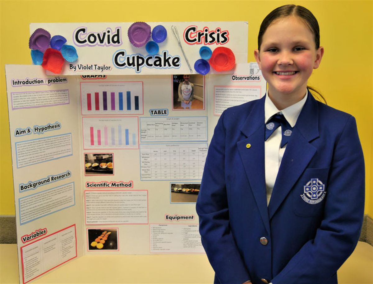 Year 7 student, Violet Tayor entered her project, ‘Covid Crisis Cupcakes’ into the Consumer Science category and was awarded a special prize for her efforts. Violet’s project looked at different types of flours and how they affect the weight and height of cupcakes. In her testing, Violet found that coconut flour was the least favoured as it only reached 3cm in height, whereas wholemeal flour reached 5.175cm, which was the highest.