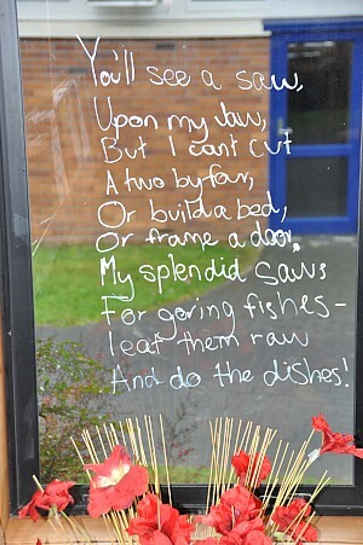 Students could choose whether to write an original poem, an extract from a favourite poet or part of a song, and whether to write in English or another language. The idea took off as word got around with many students and staff keen to leave their mark. Soon the windows were adorned with poems in English, Dutch, Spanish, Chinese, Korean Tongan, German, Thai, Japanese, Spanish and Africaans – with translations in English encouraged.